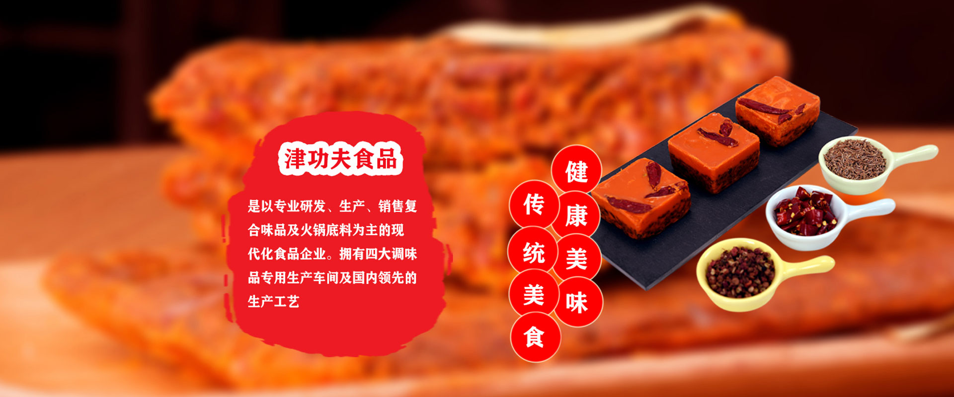 廣東津功夫食品有限公司,位于廣東省肇慶市國家高新區(qū),占地面積約2.5萬平方米,是以專業(yè)研發(fā)、生產(chǎn)、銷售復(fù)合調(diào)味品及火鍋底料為主的現(xiàn)代化食品企業(yè)。      "津功夫"為公司注冊(cè)商標(biāo)。公司擁有四大調(diào)味品專用生產(chǎn)車間及國內(nèi)領(lǐng)先的生產(chǎn)工藝;裝備有反應(yīng)釜、電磁炒鍋、天然氣炒鍋、蒸煮生產(chǎn)線、各型號(hào)全自動(dòng)包裝機(jī)、冷封生產(chǎn)線等先進(jìn)生產(chǎn)設(shè)備,年生產(chǎn)能力達(dá)2萬噸;配備有微檢、重金屬、金檢、水分、折光等檢測(cè)設(shè)備。        公司依照國家食品安全法,采用GMP及ISO管理標(biāo)準(zhǔn),已先后通過ISO-22000質(zhì)量管理體系認(rèn)證、HACCP認(rèn)證。        公司研發(fā)團(tuán)隊(duì)由公司創(chuàng)始人親自帶隊(duì),立足當(dāng)下,不斷創(chuàng)新,將在調(diào)味品行業(yè)20余年的潛心研究成果變?yōu)楝F(xiàn)實(shí),精品輩出,為客戶創(chuàng)造更多、更好的價(jià)值。公司以川味調(diào)味品為根,以客戶需求為本,開發(fā)了復(fù)合調(diào)味品及火鍋底料兩大板塊的系列產(chǎn)品。復(fù)合調(diào)味品板塊涵蓋: